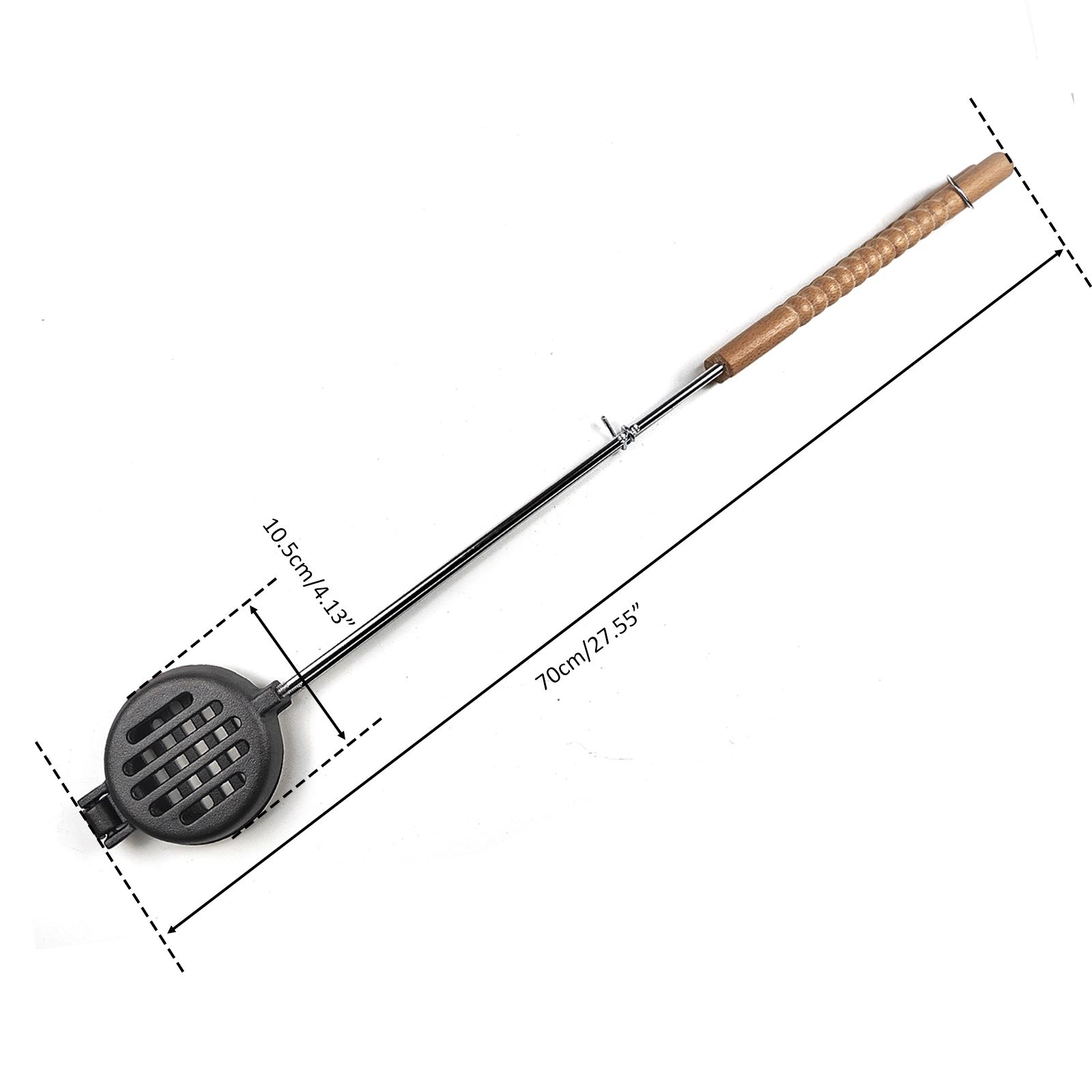 2.Stainless steel shaft with stayed-cool wooden handle. Open hinged construction for easy cleaning