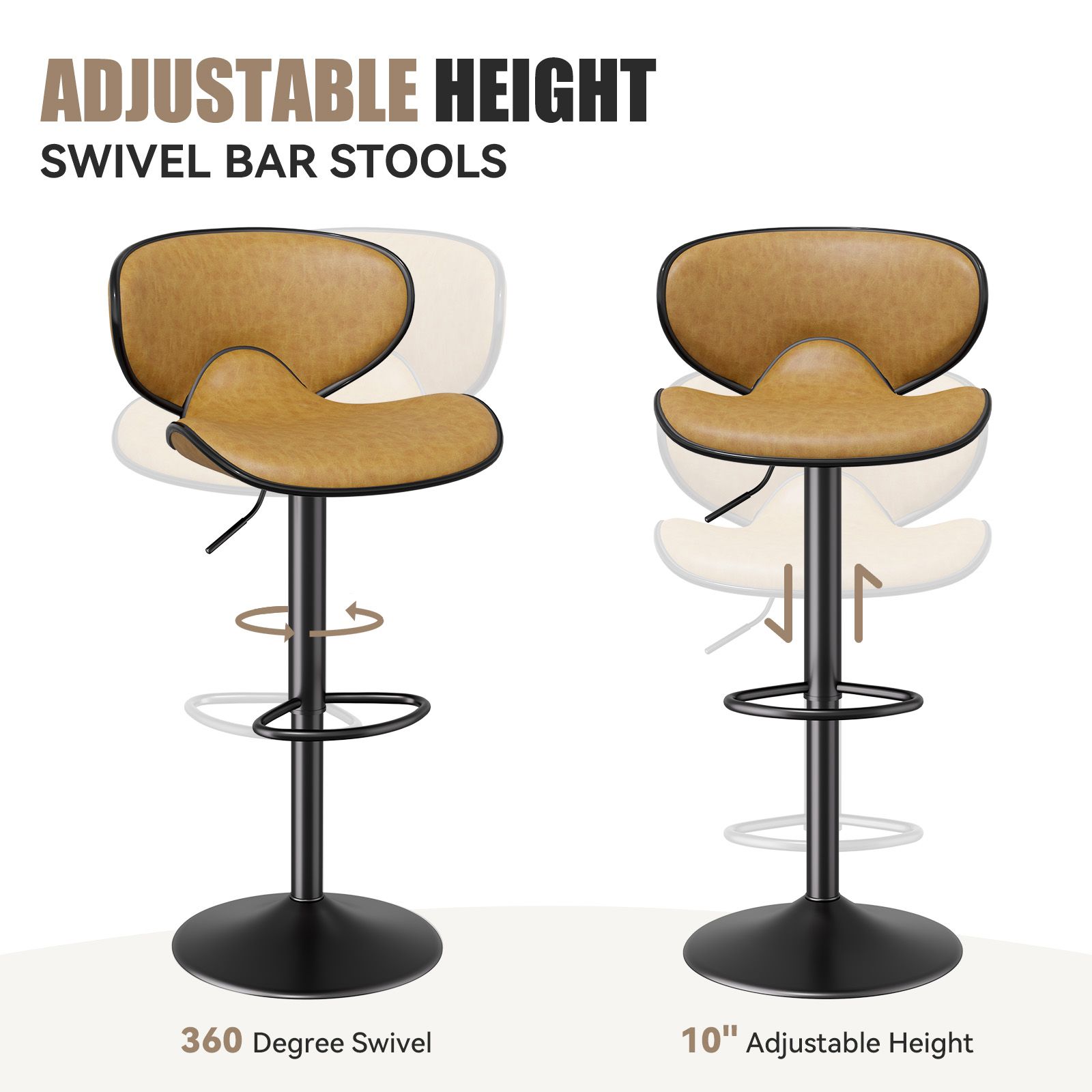 Adjustable Height & 360° Swivel: Easily adjust the height of the bar stool from 25.4" to 33.2" with a simple lift of the lever beneath the seat. The high-intensity pneumatic rod allows for smooth 360-degree rotation, offering full mobility whether you're having breakfast at the kitchen island, hosting a cocktail party, or chatting with friends.