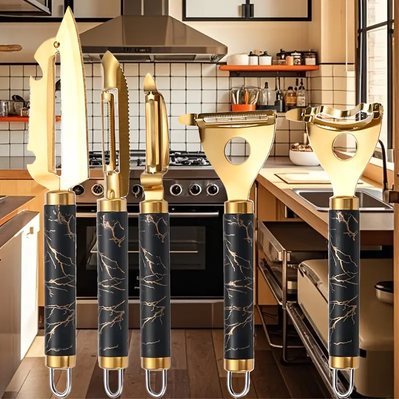 This premium stainless steel peeler set combines three essential kitchen tools in one durable, ergonomic design. Featuring ultra-sharp 420J2 stainless steel blades, it effortlessly handles fruits, vegetables, fish scales, and corn kernels while resisting corrosion.