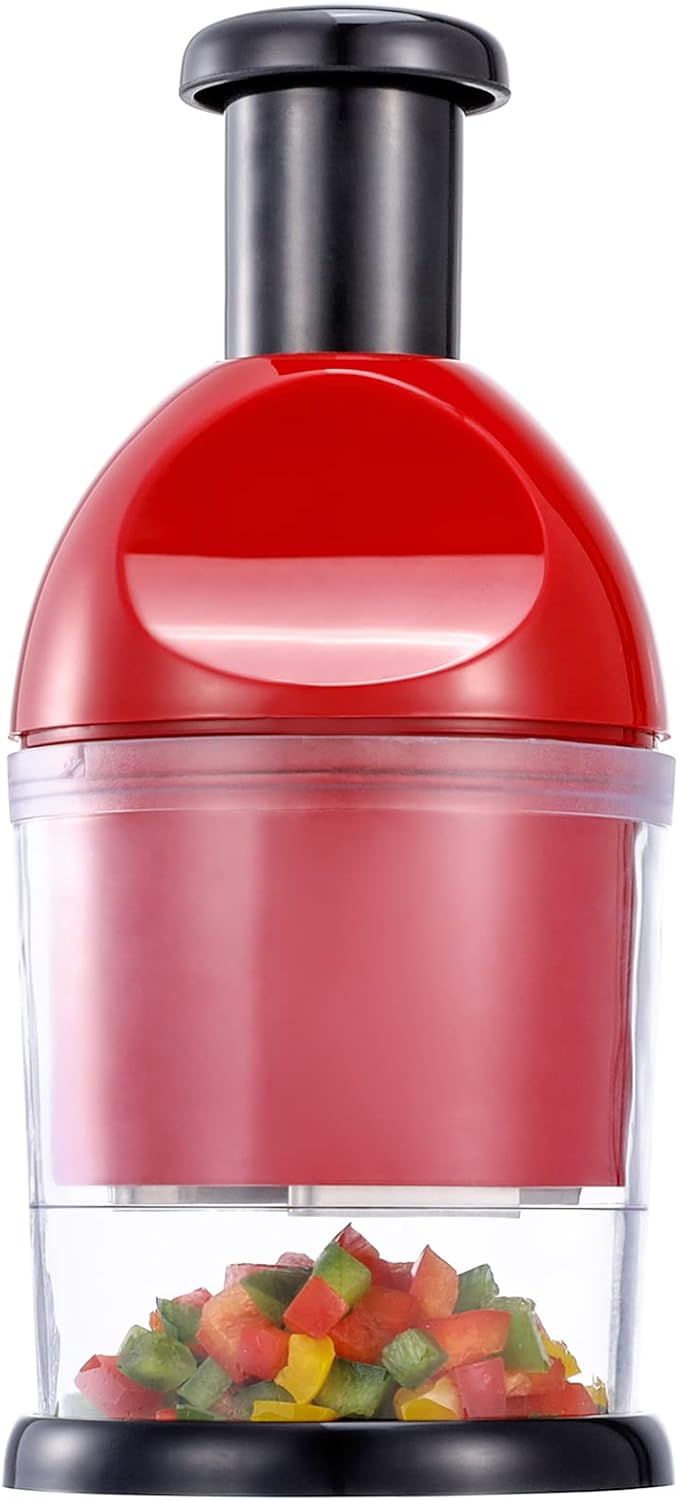 Food Chopper, Hand Chopper Dicer Easy to Clean, Manual Slap Vegetable Cutter Onion Dicer, Garlic Mincer for Onion, Nut, Tomato, Pepper, Celery, etc, Red