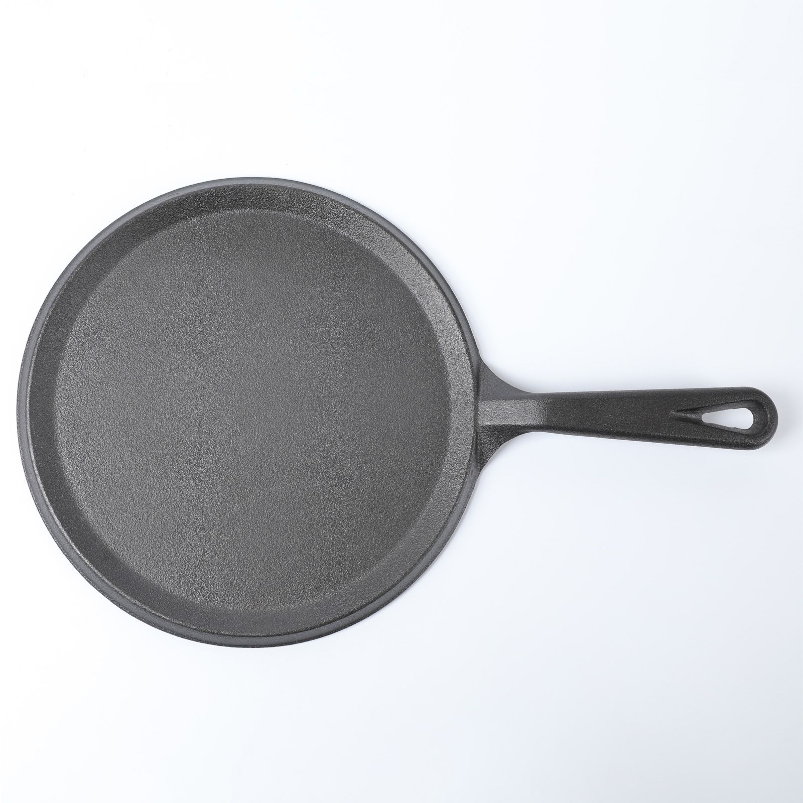 Cast Iron 9.5-inch Griddle is a multi-functional cookware that works wonders with all your favorite foods. This griddle is essential for big breakfasts, tortillas, quesadillas, roasted vegetables and grilled sandwiches.Cast iron loves a campfire, a stove top, or an oven, and can slow-cook foods without scorching. It retains heat well so you can sear meat at higher temperatures and will keep your delicious meals warm for a long time.