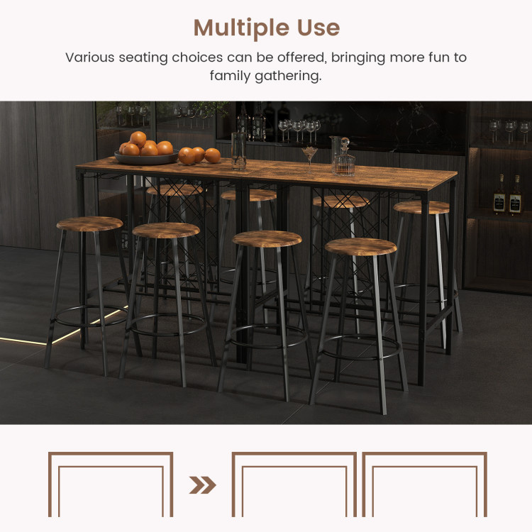 Industrial 5 Pieces Bar Table Set: The bar set includes 1 table and 4 stools, which can accommodate 4 people to gather for a drink, afternoon tea or casual meal. Its industrial style and rustic wood grain add aesthetic beauty to various places, such as home, restaurant, coffee shop and bar.
