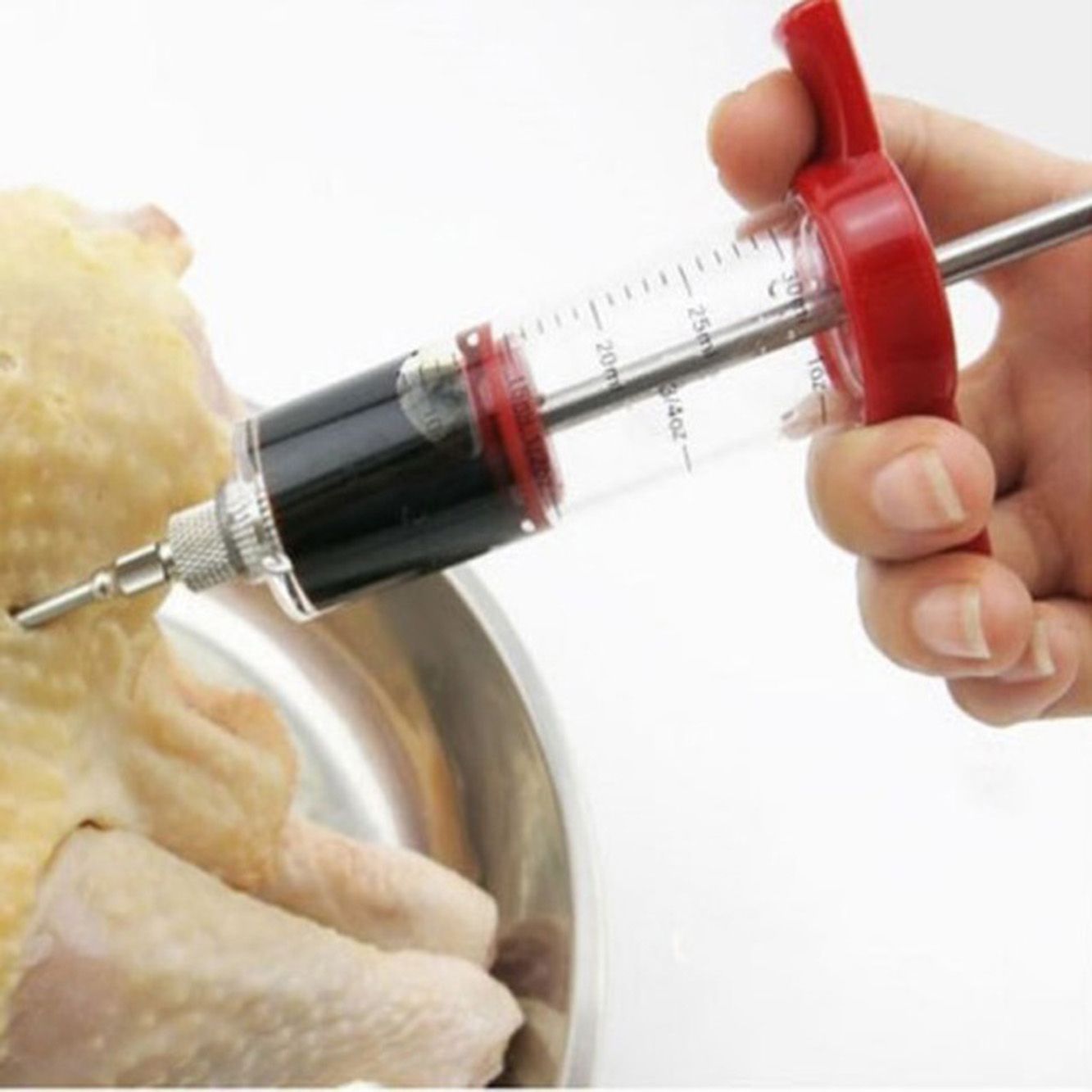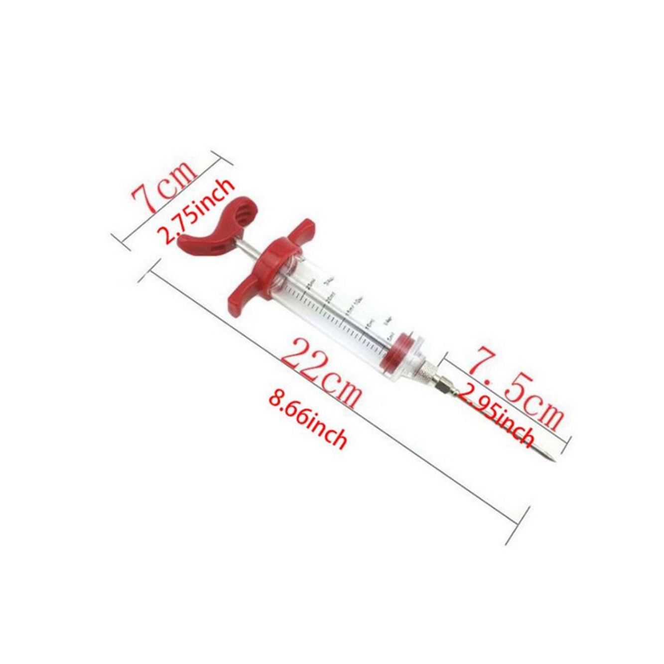 1.Easy to One-Hand Use & Dishwasher Safe - ergonomically designed for one-hand injecting handles; graduated injection chamber: 1-oz/30ml capacity measurement markings in ml and oz up the side; 3" sturdy seasoning injector needle with hole for deep penetration and perfect sauce distribution with liquid