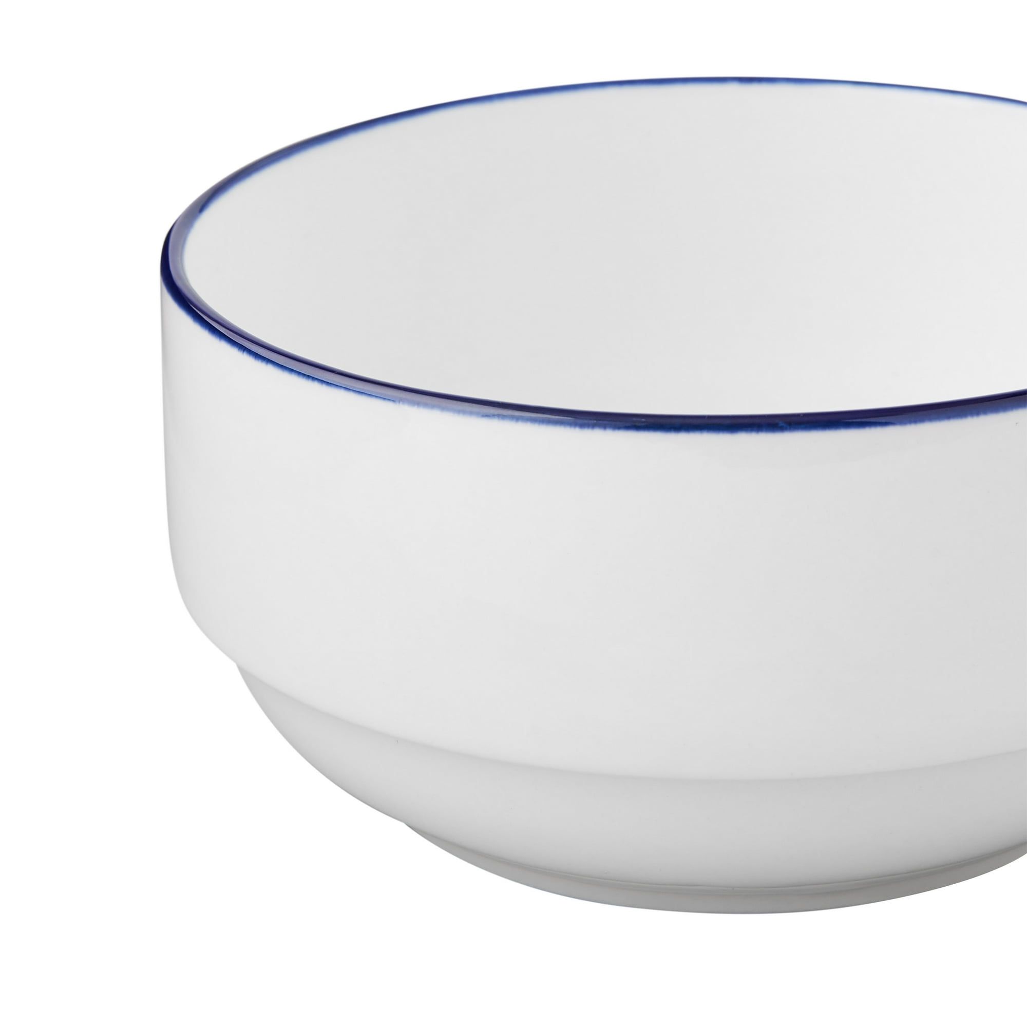 Whether it's a goulash, soup, or ice cream being served up, make there are enough bowls to go around. Mainstays Blue Rim Stoneware Bowl holds hearty portions of whatever is on the menu. Stoneware makes it durable for when life happens, and it's microwave safe and dishwasher safe for everyday use! For a bowl that holds up from breakfast cereal to dinner party aperitifs, go with the Mainstays Blue Rim Stoneware Bowl. Pair this bowl with other blue banded dinnerware items from Mainstays for a complete dinner set that will elevate the appearance of your dining room and delight your guests.